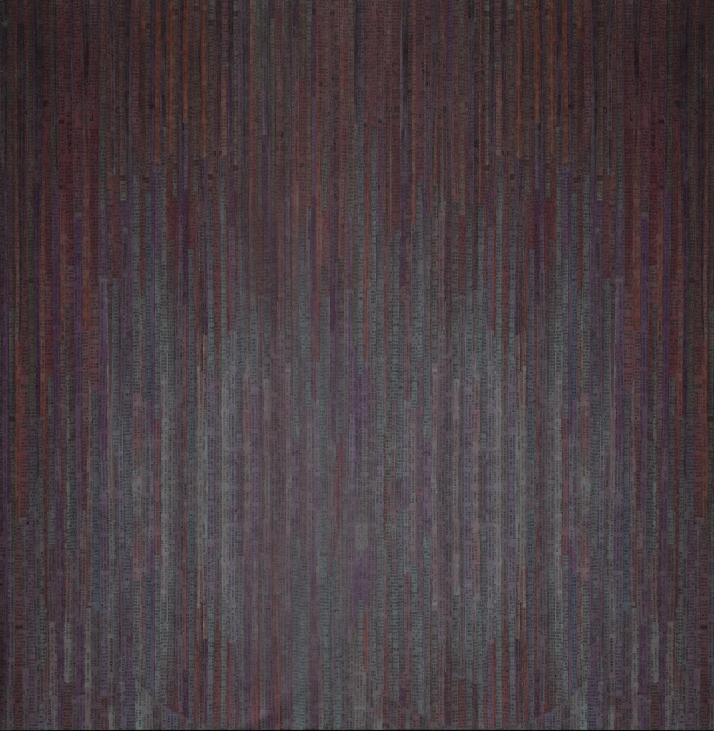 Collage: antique American newsprint tinted, cut and applied to stretched canvas.