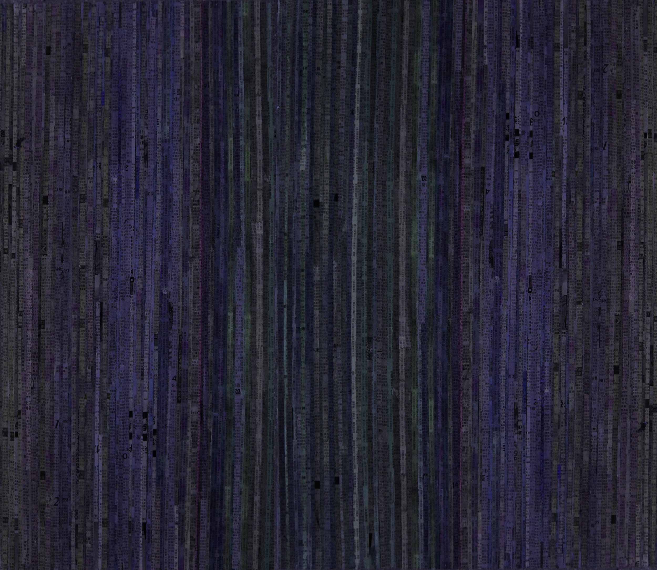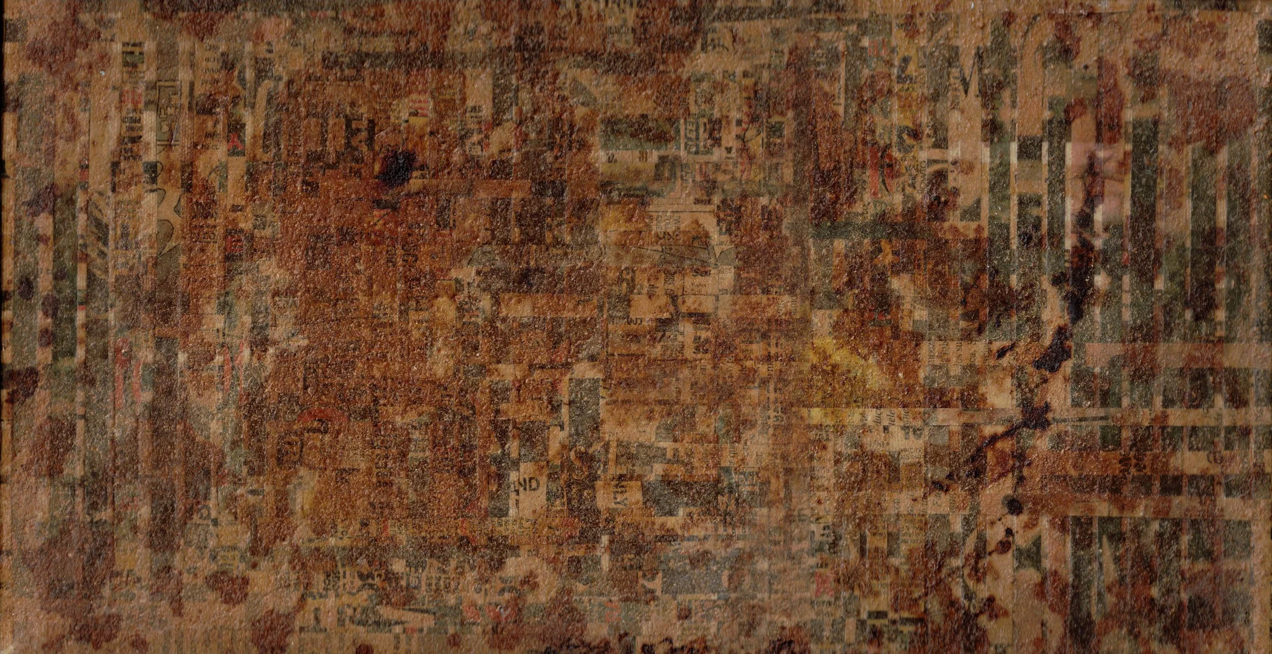 Collage, stained newsprint on canvas 10 × 10 × 1.5 inches