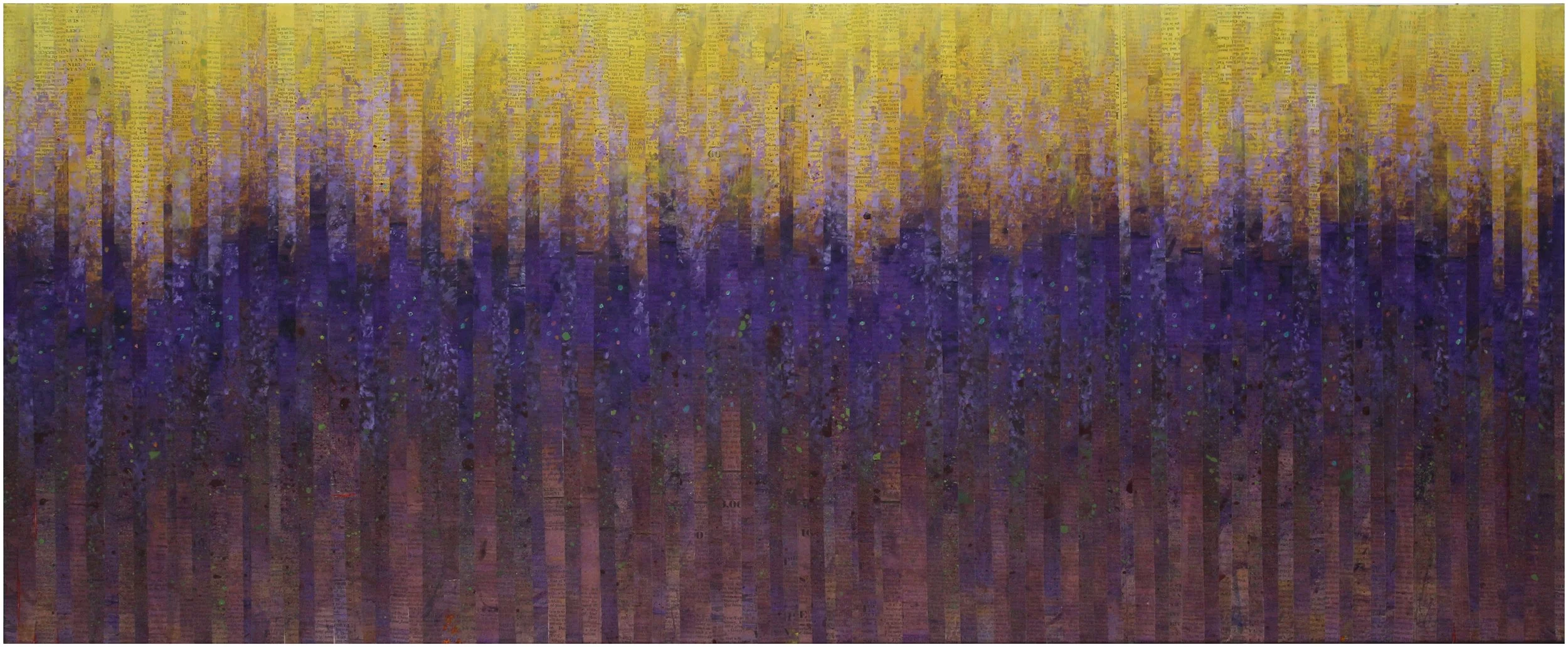 Collage: antique American newsprint tinted, cut and applied to stretched canvas.